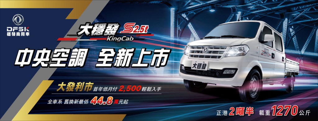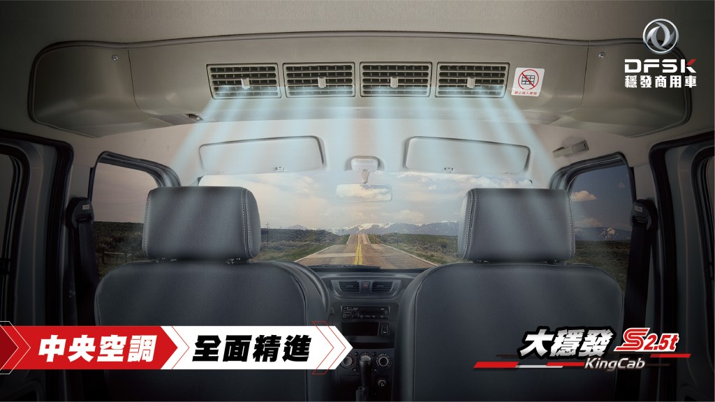 為了回饋頭家朋友們的支持,DFSK穩發商用車持續滿足頭家朋友們的需求,秉持不斷創新目標,面對即將到來的炎熱夏日,穩發商用車特別推出雙廂大穩發S2.5新增後座中央空調系統,讓一起在外打拼的工作夥伴們也能享有更舒適的乘坐環境,全新再進化的雙廂大穩發S2.5t即日起正式發售,建議售價新台幣63.8萬元。