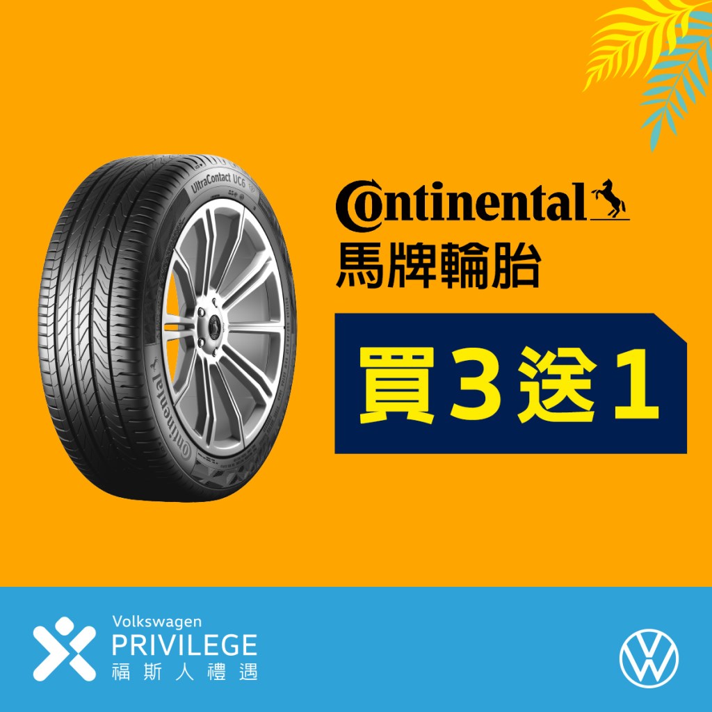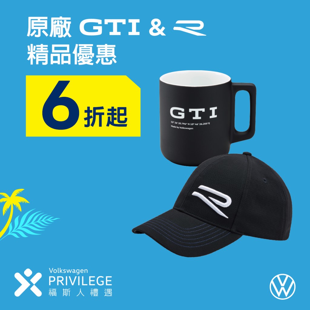 - 原廠指定馬牌輪胎(Continental)買3送1、限量原廠GTI及R精品6折起,敬邀「福斯人禮遇計畫」會員以最低288元搶先入手。