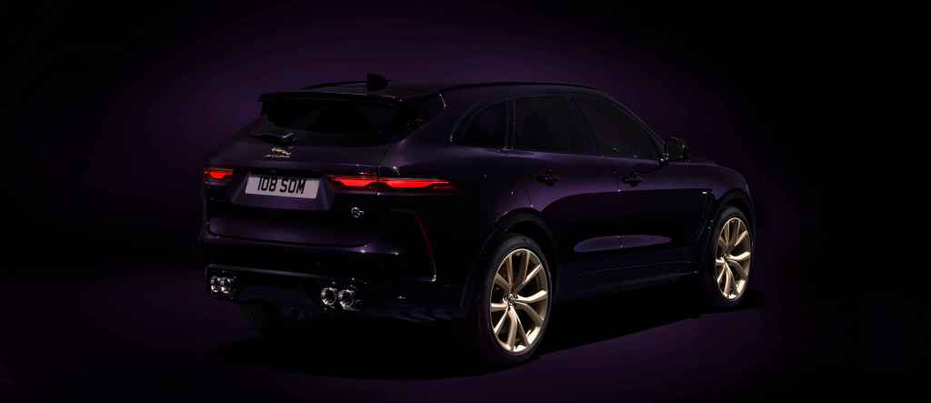 設計靈感源自 Jaguar 一段充滿情懷的優良賽事傳統,包括特殊調配的午夜紫水晶車漆、香檳金緞面 22 英吋鍛造合金輪圈、日落金緞面外觀與精美內飾,包含一塊“One of 394”的 SV Bespoke 識別銘牌。