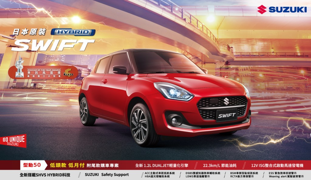 SWIFT與IGNIS自2020年在台導入HYBRID輕油電車款後,立即獲得消費者的廣大迴響,2022年在國內的車壇盛事「車訊風雲獎」中透過28位專業汽車媒體、業界專業人士及消費者代表組成的評審團評選,不負眾望連續兩年蟬聯「最佳進口小型車」及「最佳進口都會車」的雙料肯定!