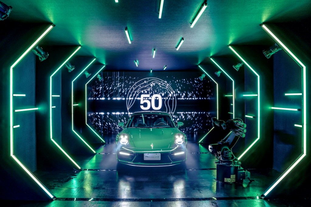 在Porsche AG 以及祖文豪森 Exclusive Manufaktur 專家們的通力合作之下,台灣保時捷打造出這款專為此一別具意義的時刻而生的911 Carrera GTS保時捷在臺 50 周年獨步紀念款,以許多獨特的外觀設計與內裝細節來紀念保時捷來台50年的長遠時光,層峰綠的車身塗裝象徵披覆台灣的亞熱帶山林,同時以更現代的方式,紀念1972年首部由官方代理商引進,身披鬣蜥綠塗裝的保時捷 911 E。