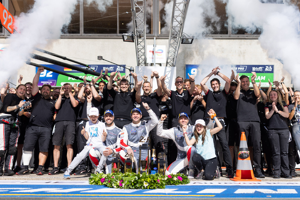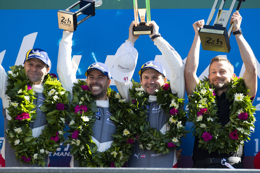 保時捷贏得利曼 24 小時耐力賽(Le Mans 24 Hours)GTE-Pro組冠軍,來自義大利、奧地利和法國的三位保時捷廠隊車手Gianmaria Bruni、Richard Lietz 與 Frédéric Makowiecki,在經歷超過 350 圈緊張刺激的競賽之後,率先通過終點線。