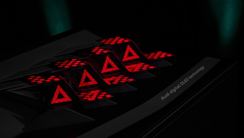 Audi 具有曲線性質的Digital OLED 尾燈獨步全球,特殊之處在於其具有柔軟且靈活性的物質特性,讓燈組結構能夠從平面轉變為立體形式,這不僅使其設計造型具有更多可能性更加銳利,也能夠將燈具造型以及燈光照明融合,有助於與外部進行通訊交流。