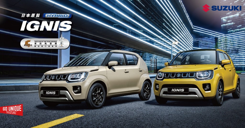 TAIWAN SUZUKI 秉持 GO UNIQUE 的品牌理念,持續推出兼具風格與駕馭樂趣的獨特車款。2022年SUZUKI旗下乘用車全面搭載新世代輕油電科技,帶給消費者全輕進化的操駕感受。2020年IGNIS改款引進SHVS 12V輕油電科技,作為SUZUKI全輕進化的第一步,同年SWIFT搭載SHVS 12V輕油電科技,造就高效節能油耗表現驚艷車壇;SWIFT Sport、VITARA再度進化搭載SHVS 48V輕油電科技,至今SUZUKI乘用車已全面搭載新世代輕油電科技及ISG整合式啟動馬達發電機,讓SUZUKI車主能更輕鬆駕馭未來。此外,SUZUKI 更連續兩屆於台灣車壇年度盛事「車訊風雲獎」中,榮獲「最佳進口小型車」及「最佳進口都會車」的殊榮,屢次獲得專業車媒與消費者的肯定。