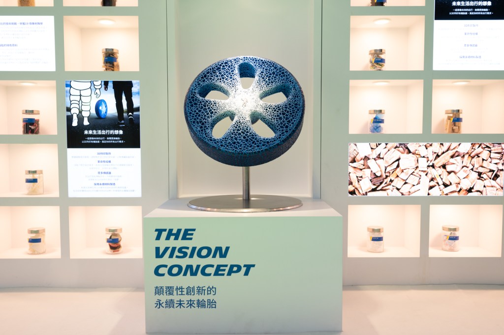 - 米其林未來概念輪胎首次在台曝光:米其林集團為達2050碳中和目標所研發的概念產品「 The VISION Concept 」,該輪胎採用Airless免充氣的設計,運用仿生學設計出蜂巢型的結構可取代現行的金屬輪圈,Visionary Concept的概念是車主能夠經由車輛內部的電子系統來設定輪胎的配置,輪胎也能夠與車輛互相連結溝通,透過3D列印技術因應不同路況進行「胎面列印」,且完全採用可經由生物分解的材質製成,降低環境衝擊。此概念輪胎榮獲紅點最佳設計獎。