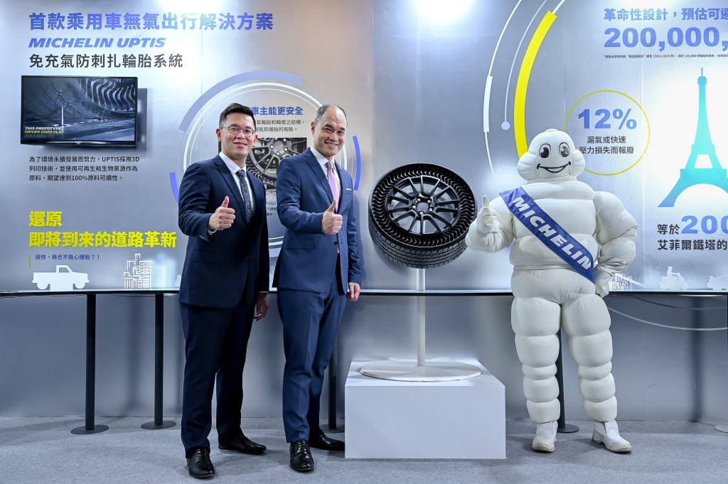 - 米其林最新免充氣防刺扎輪胎系統:UPTIS (Unique Puncture-Proof Tire System),米其林打破現有輪胎設計之新世代產品,不須充氣、不再有輪胎爆胎、車輛停駛的風險。