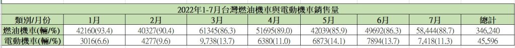 | 2022年7月台灣燃油機車與電動機車銷售暨佔有率 | ||