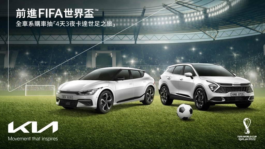 Kia致力於實踐「Movement that inspires 移動 ‧ 啟發人心」的品牌精神,除了落實在產品、通路、銷售、售後服務與消費者體驗之外,Kia同樣積極贊助各項運動賽事,提供獨一無二的品牌體驗給熱愛Kia品牌的車主。今年適逢四年一度的2022 FIFA世界盃™足球賽,Kia更將成為此次世足賽的官方合作夥伴!2022卡達世界盃,不但是四年一度的足壇盛事,世界頂尖足球員在場上的精湛球技與團隊合作精神,更將啟發全球各地無數球迷。Kia 作為FIFA世界盃™足球賽主要官方合作夥伴,更期盼創造獨一無二的品牌體驗給予全球車迷。為此,Kia總代理台灣森那美起亞,特別舉辦「前進FIFA世界盃™,全車系購車抽4天3夜卡達世足之旅」活動(註1),將帶領車主球迷親身前往現場感受世界盃足球的魅力,並感受Kia「Movement that inspires 移動 ‧ 啟發人心」的品牌精神。