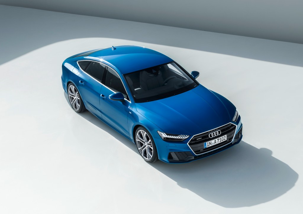 - Audi A7 Sportback 55 TFSI quattro S line運動版搭載同級唯一3.0 升V6 雙渦輪增壓引擎,更搭載S line跑車套件與 S line外觀套件、跑格化專屬20吋鋁圈及碳纖維內裝飾板,嶄露時尚運動化鋒芒氣息。
