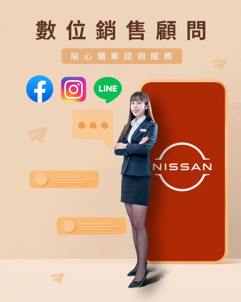 NISSAN秉持「技術日產 智行未來」品牌內涵,不斷創新自我及與時俱進,因應現今消費者網路消費需求逐年上升、線上銷售服務模式興起及企業數位轉型趨勢,自即日起正式推出NISSAN數位銷售顧問服務。