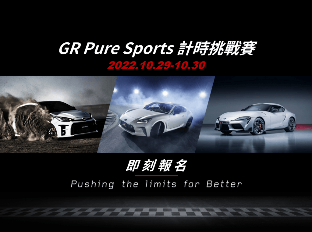 為讓GR車主更深入體驗GAZOO Racing團隊征戰全球大小賽事所凝聚的造車工藝,並推廣台灣賽車運動,TOYOTA總代理和泰汽車今年首度冠名贊助STS超級房車全國系列賽第四站,並舉辦符合FIA認證的「GR Pure Sports計時挑戰賽」。邀請GR車主們駕駛自己的愛車,於10月29及30日在台中麗寶國際賽車場創下自己的最佳單圈紀錄,也同時歡迎廣大的GR粉絲們一同觀戰!