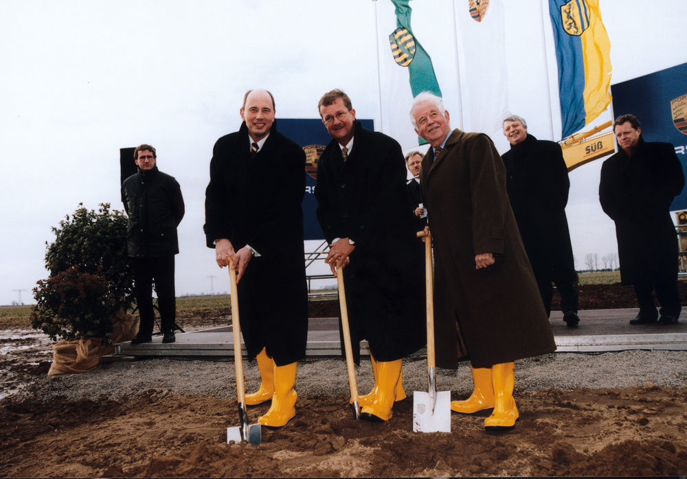 這項決策於1999年9月正式對外宣佈。公司內部、萊比錫市和薩克森邦一起緊鑼密鼓地籌備,以在緊湊的時程內完成這個大型專案。據Mildenberger說,光是準備正式的動土儀式就已經是一個蠻大的挑戰。「原本計劃只邀請100位來賓參加,但隨著時間過去,大家口耳相傳都得知了保時捷在萊比錫的重要性。突然間,每個人都想參加。」他說。最終,他需要一個巨大的帳篷、餐點、衛生設備和可以滿足350名來賓的設施。在最後一刻,Mildenberger還必須準備認證合格的黃色工地安全靴。Wendelin Wiedeking、當時的薩克森邦總理Kurt Biedenkopf、當時的萊比錫市長Wolfgang Tiefensee在動土儀式上都穿上這些安全靴。