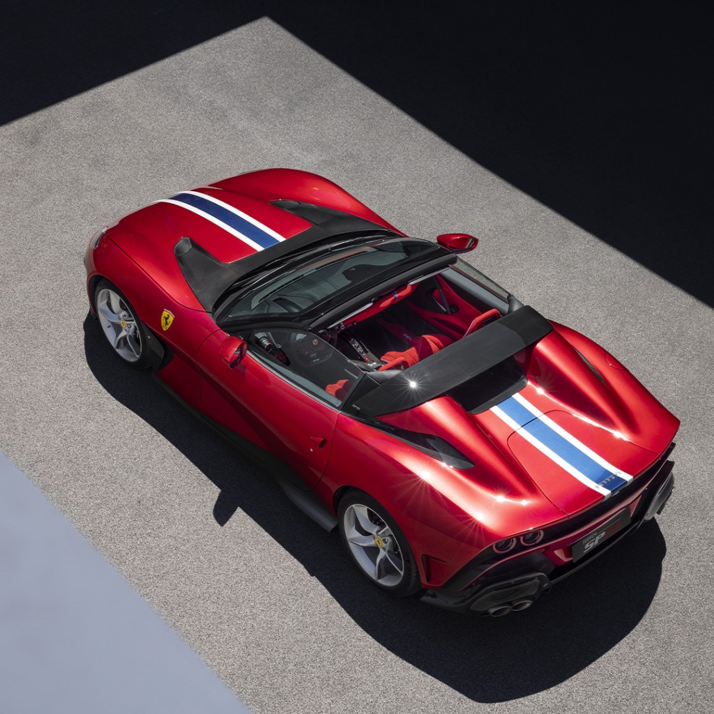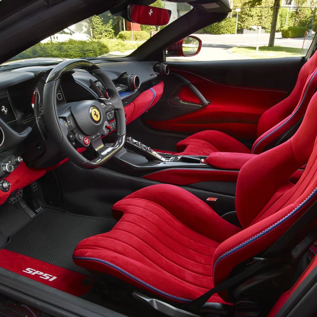 Ferrari SP51由首席設計師Flavio Manzoni領導的法拉利設計團隊匠心打造,是一台採用前中置V12引擎配置的法拉利敞篷跑車。其源自812 GTS的結構並承襲其底盤和引擎配置。一眼望去,沒有車頂的造型設計更是令人驚豔,完美展現躍馬品牌純正的敞篷跑車性格,在賦予視覺享受或恣意馳騁的敞篷跑車駕馭樂趣上,盡顯法拉利純正的運動風範與迷人魅力。