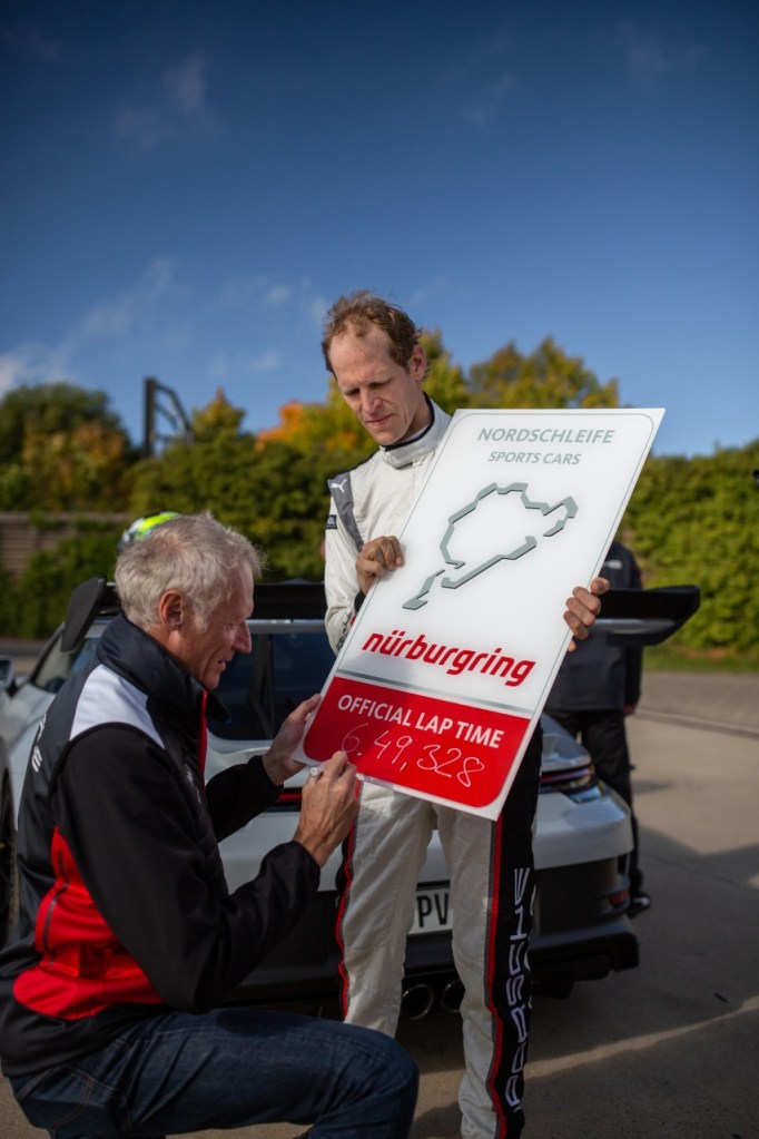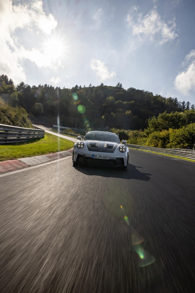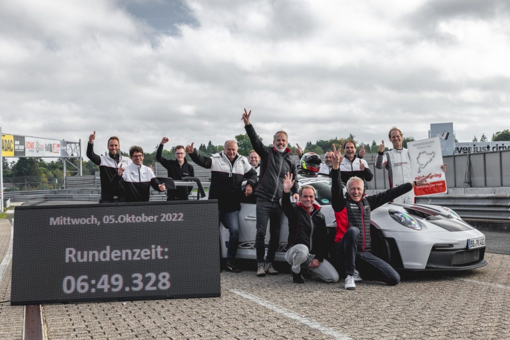 全新保時捷 911 GT3 RS 以 6 分 49.328 秒強勢之姿完成全長 20.8 km 的紐柏林北環賽道,比現行款 911 GT3 快了 10.6 秒之多。這項紀錄由參與開發該款 911車系全新旗艦的保時捷品牌大使 Jörg Bergmeister 所締造,賽道官方人員亦於現場見證此一圈速新紀錄。