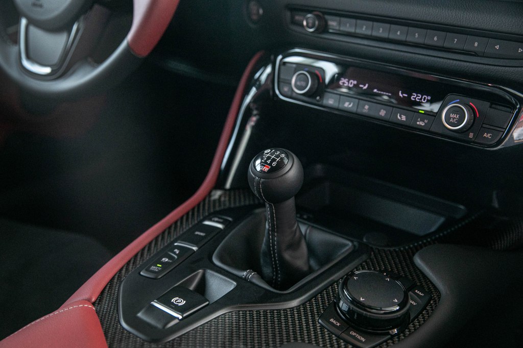 全新導入的GR SUPRA 3.0T Premium MT,搭載全新開發的六速手排變速箱,輕量化的設計不僅降低車重,更打造熱血的駕馭體驗;配備iMT智能換檔科技,讓換檔更順暢、加速更敏捷,透過偵測換檔時機並主動調整引擎轉速*2,實現更加平穩舒適的駕馭體驗。排檔座部分,更設計獨特球形排檔桿,讓車主方便從各角度抓握與操控,頂部綴飾的GR標誌,彰顯運動化形象,點燃車主的熱血跑魂。
