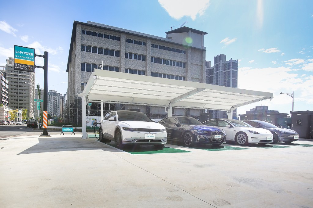 4. 配套貼心化 : U-POWER所有站點都擁有美型雨遮的貼心設計,讓車主不論在晴雨天候,都能優雅舒適地使用充電服務;超大尺碼停車格設計,多車同時充電也不擔心開啟車門時發生擦碰;進場低角度坡道設計,就算是低趴的電動跑車也都能輕鬆進出場域,享受超高速充電服務。