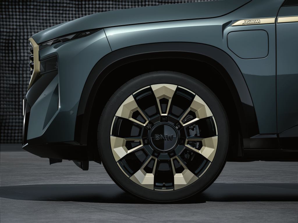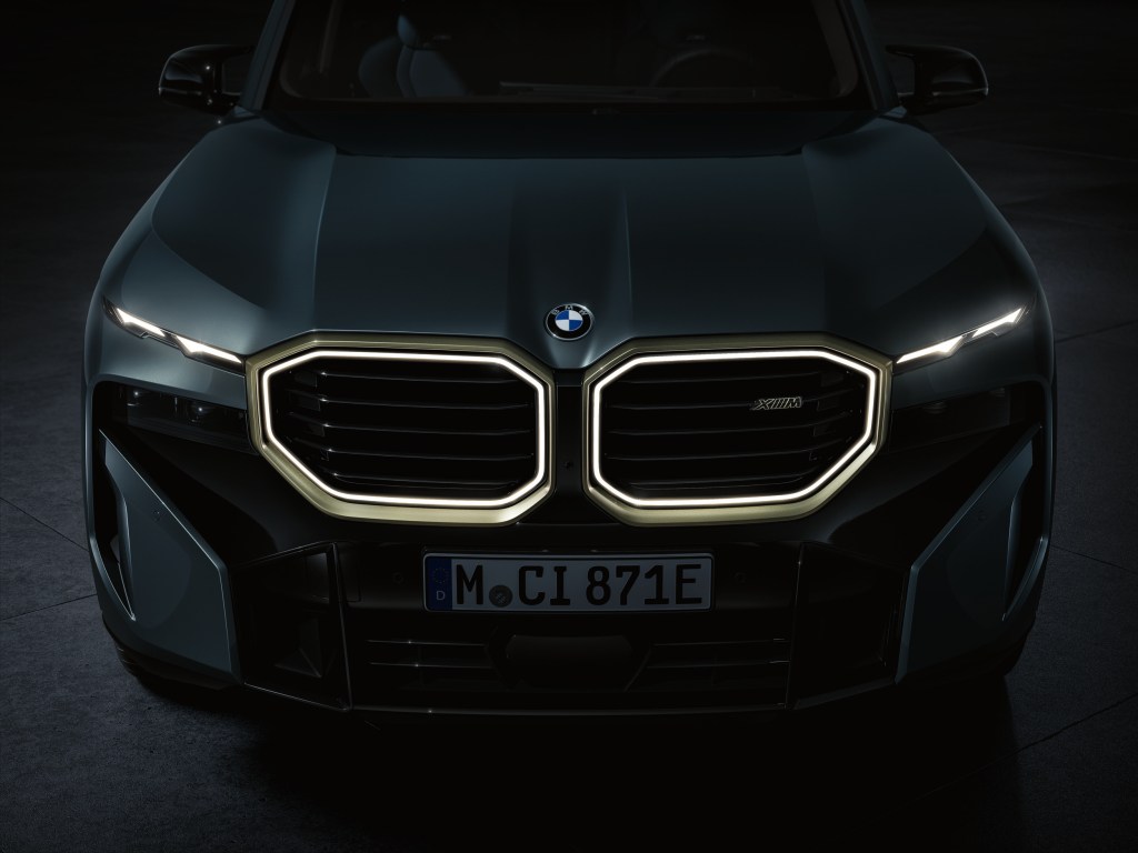 一出場即奪眾人目光,全新首創BMW XM結合經典傳承與未來前衛的設計元素,打造出BMW全車系中最出眾獨特的亮眼造型。佇立車前,霸氣而寬闊的雙腎型M橫柵式水箱護罩以緞金色邊框圍繞,搭配BMW LED環型飾光燈條,展現BMW XM強烈的磅礡氣勢與豪華跑旅領袖之姿。同樣以緞金色打造的車側風格飾條,自前輪拱上方延伸至車尾與窗框相接,承襲了最經典的BMW M1車身線條設計元素。全新首創BMW XM以雷射雕刻方式將雙BMW Logo放置於後擋玻璃左右上緣,向BMW M1車尾造型致敬。全新首創BMW XM標準配備專屬的23吋M星幅式923 M型輪圈,搭配中央輪圈蓋上黑色立體BMW字樣造型,無論是在行進間或靜止狀態皆是目光焦點。
