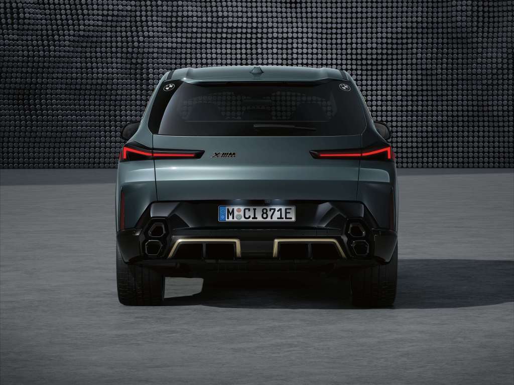 360度全方位精心設計的BMW XM在車尾也呈現出極致絕美的獨特巧思,黑色高光澤XM車型銘牌及後下擾流飾板以緞金色外框包覆,散發出尊貴不凡的氣派與自信;立體燻黑造型尾燈上的三斜線雕刻,不僅與BMW M品牌標誌相應,更流露BMW M1車尾經典摺葉造型的影子。首次以垂直排列的六角型四出排氣尾管,隨著M運動化排氣系統轉速直上的排氣聲浪,無論在視覺或聽覺上都分外氣宇非凡。
