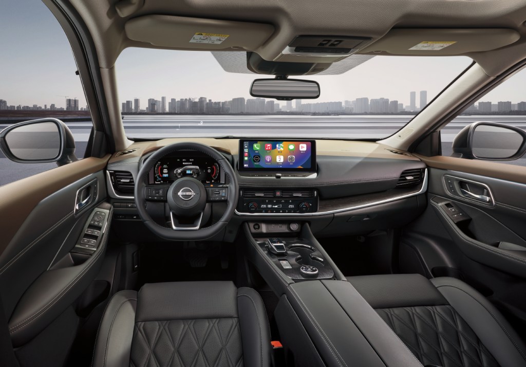 NISSAN X-TRAIL e-POWER配備豪華進口車的數位精品座艙,讓駕駛智慧掌控駕車資訊,包含 12.3吋數位儀表板,行車資訊導航地圖一目了然;10.8吋數位抬頭顯示器,透過雙曲面光學反射技術,讓大尺寸不失真變形的駕車資訊清晰顯示於駕駛眼前;12.3吋數位影音主機,支援無線Apple CarPlay智慧手機連結功能,與 Android Auto手機連結,行車與娛樂資訊不漏接,車室內更配備9顆頂級BOSE音響系統,搭配NVH全車靜音工程、雙層隔音玻璃與雙前座電動皮椅,讓車主奢華駕馭,享受宛如行動音樂廳的聽覺饗宴(註8)。