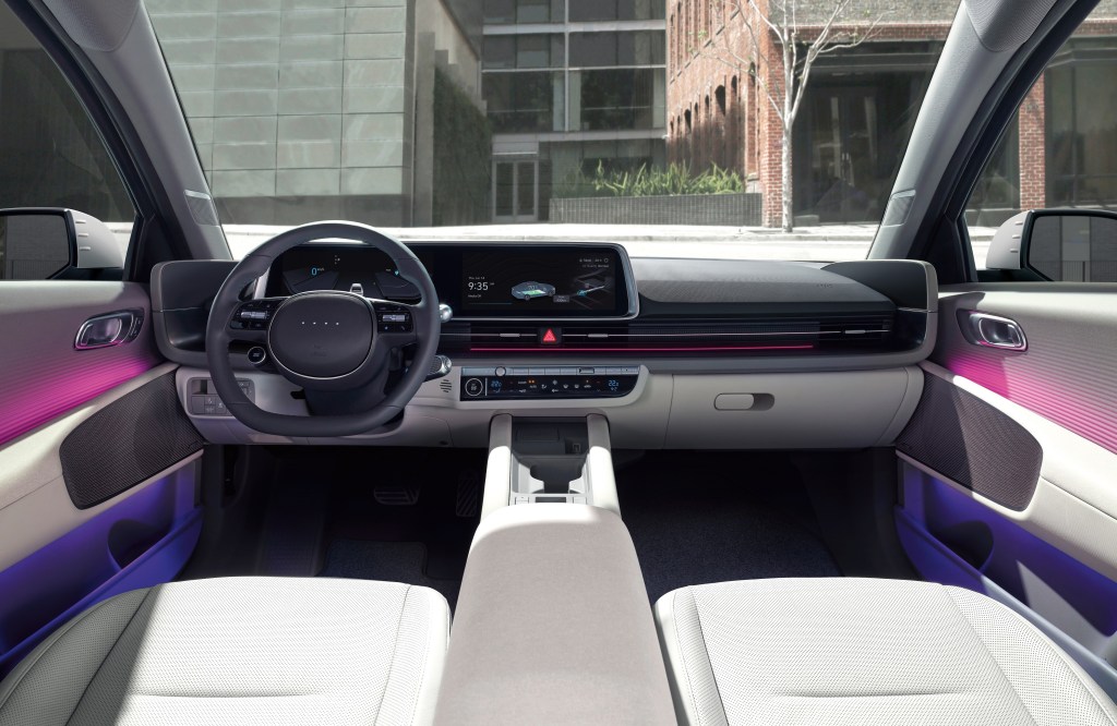 車室內受惠於先進E-GMP電動車模組化底盤,IONIQ 6軸距長達2,950mm,短前後懸設計將空間最大限度保留給乘座,不僅前座舒適,後排空間更是寬敞。後座則搭載IONIQ品牌創新之作–V2L( Vehicle To Load )外接供電功能,具備雙向電力供應能力,隨時隨地提供電能補充,滿足各式各樣的用電需求。IONIQ 6在車內設計多處機能空間,包含門板上採用Button-less漸層式門板,加大置物空間且使用上更加便利;天橋式中控台則提供額外的專屬空間,對應生活中的各種收納需求。同步上市並可加價客製訂購米白色內裝註1或選配Premium package電動玻璃天窗及HUD抬頭顯示器註2。