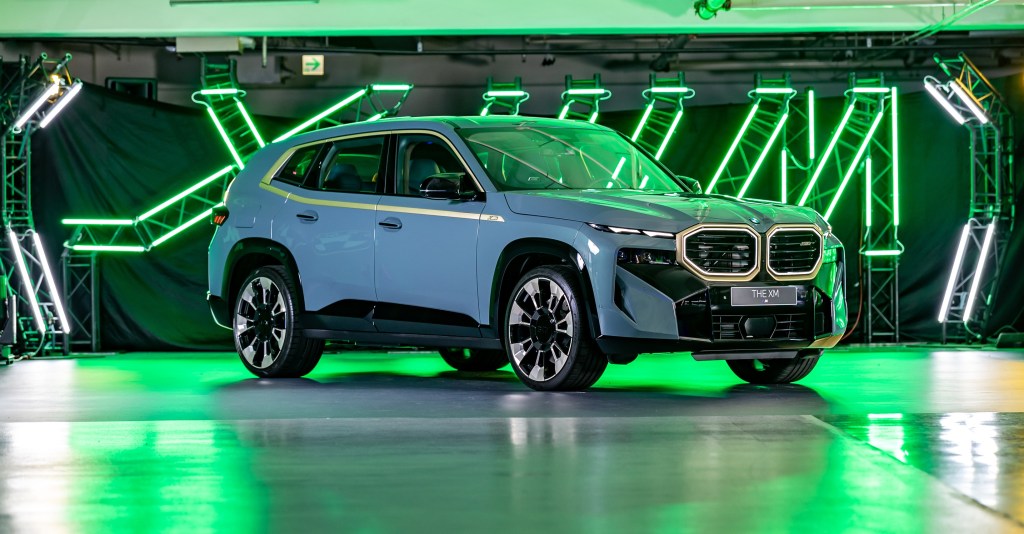 一出場即奪眾人目光,全新首創BMW XM結合經典傳承與未來前衛的設計元素,打造出BMW全車系中最出眾獨特的亮眼造型。佇立車前,霸氣而寬闊的雙腎型M橫柵式水箱護罩以緞金色邊框圍繞,搭配BMW LED環型飾光燈條,展現BMW XM強烈的磅礡氣勢與豪華跑旅領袖之姿。同樣以緞金色打造的車側風格飾條,自前輪拱上方延伸至車尾與窗框相接,承襲了最經典的BMW M1車身線條設計元素。全新首創BMW XM以雷射雕刻方式將雙BMW Logo放置於後擋玻璃左右上緣,向BMW M1車尾造型致敬。全新首創BMW XM標準配備專屬的23吋M星幅式923 M型輪圈,搭配中央輪圈蓋上黑色立體BMW字樣造型,無論是在行進間或靜止狀態皆是目光焦點。