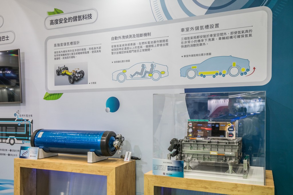 另外,市區公車及公部門用車需在2030年達到全面電動化,氫能車也可望成為其中要角。和泰汽車積極與原廠爭取新能源商品,此次於會場首次展出未來規劃導入的氫能低底盤巴士 – TOYOTA CAETANO H2 CITY GOLD動力中的儲氫瓶模組以及FC燃料電池模組。