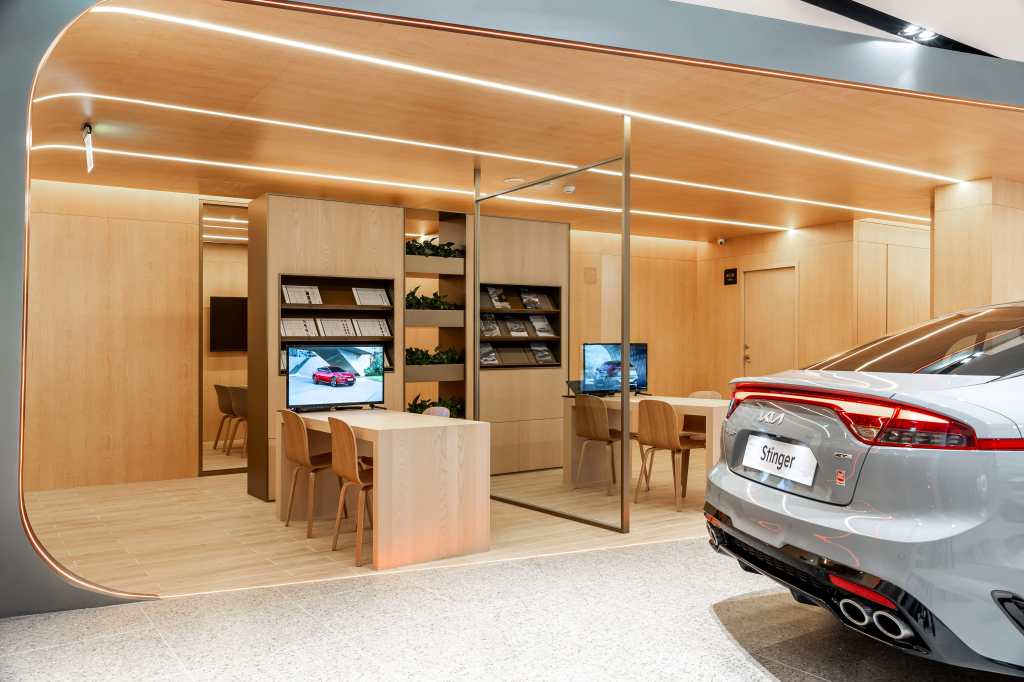 Kia總代理台灣森那美起亞,與尚麒汽車聯手進駐新北市溪北地區,也將Kia過往稱為showroom、exhibition hall的銷售展示空間,更名為「Kia Store」。「Kia Store」應用Kia品牌全新設計理念「Opposite United對立的和諧」;此設計靈感取自於大自然,並透過對比概念的融合創造出協同效應,例如結合對比鮮明的形狀、構圖和顏色等,創造出前所未有的空間設計氛圍。此外,並巧妙將空間分為展示區與客戶區:展示區是客戶可以實際接觸Kia產品的空間,以未來感與寧靜感為主要呈現,使確保展示出來的車輛能得到顧客全神貫注的注意;而客戶區則是採用大自然元素、溫潤的光線、及木質色調,打造出具有簡約自然且讓人放鬆的溫馨空間,顛覆過往人們對於傳統展示中心的印象。「Kia Store」的空間概念,將為所有貴賓創造全新的購車體驗,而不僅侷限於過去汽車展示中心的空間機能。