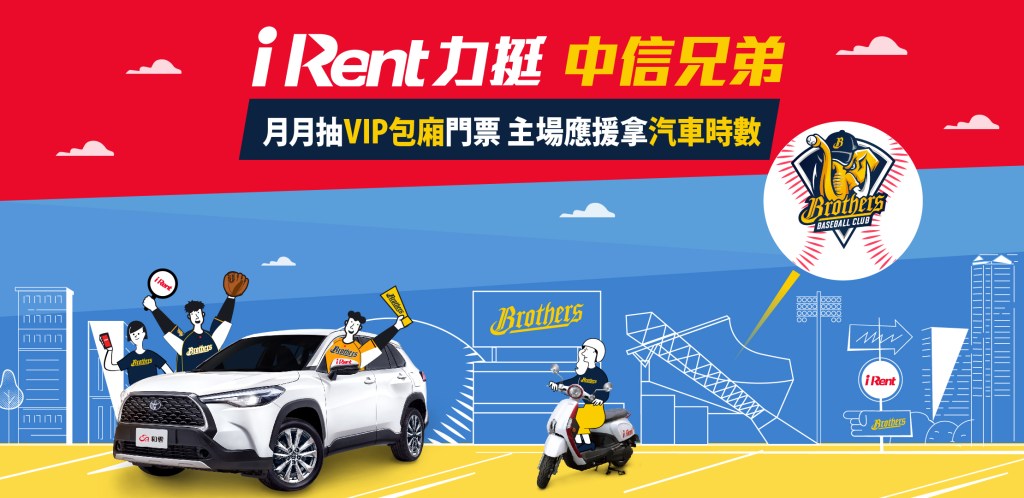 - 立即報名,獨享球迷好康,【iRent力挺 中信兄弟】活動詳情請上:
