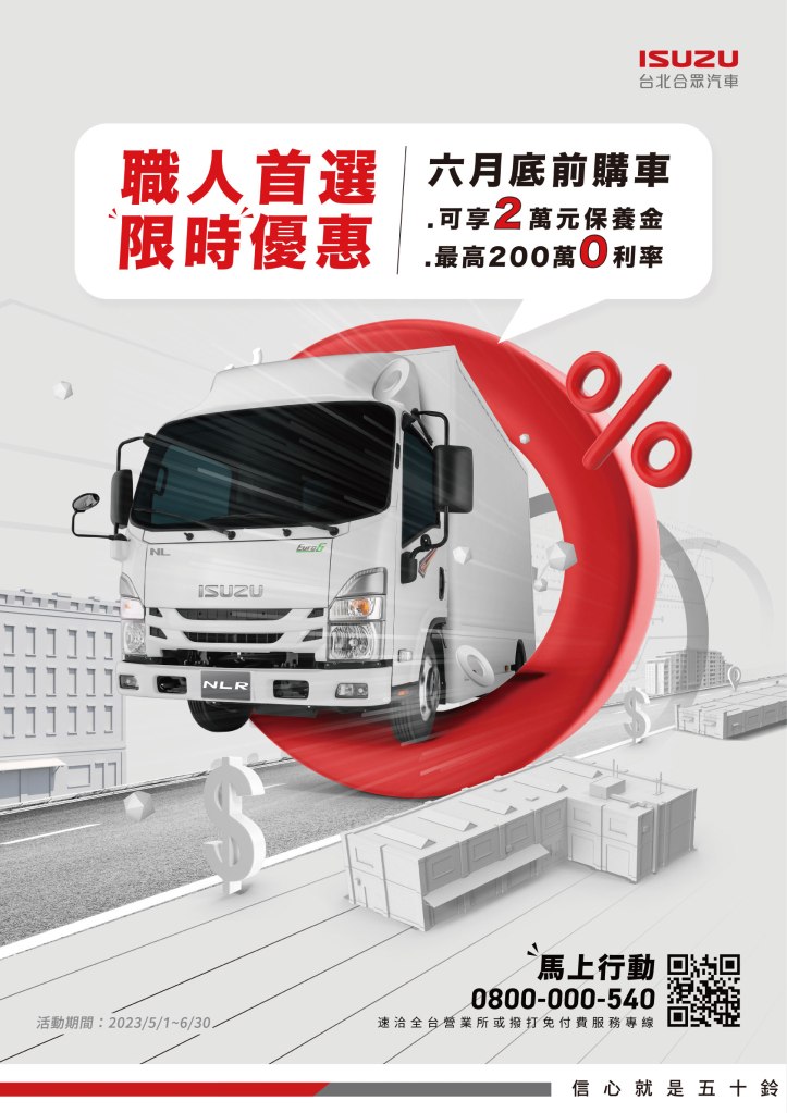 好康優惠加碼,ISUZU台北合眾汽車6月提供全車系限時購車優惠,6月底前購車加碼「贈送2萬元保養金」,且可享「百萬零利率」方案,提供N系列最高150萬0利率、F系列最高200萬0利率。另外,NLR 5噸木床車熱賣中,一週快速交車,多項貼心優惠讓運轉職人們安心打拼事業。