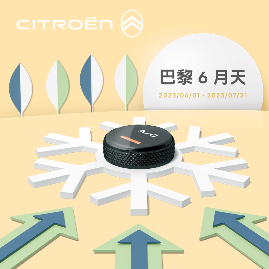CITROËN巴黎6月天冷氣健診服務活動自即日起至2023年7月31日為車主提供夏季免費冷氣健診服務及專屬零件優惠,活動期間內消費滿NT$5,000元即可獲得限量「好禮成雙6月天福袋」乙份,送完為止。活動離廠後,踴躍分享本次巴黎6月天冷氣健診服務活動體驗,完成問卷並上傳就可參加6月天幸運星抽獎。為節省您的寶貴時間,歡迎多加利用全台授權服務廠預約專線,事先安排服務時間,活動詳情請參閱官方網站www.citroen.com.tw及CITROËN全台經銷商授權服務廠。