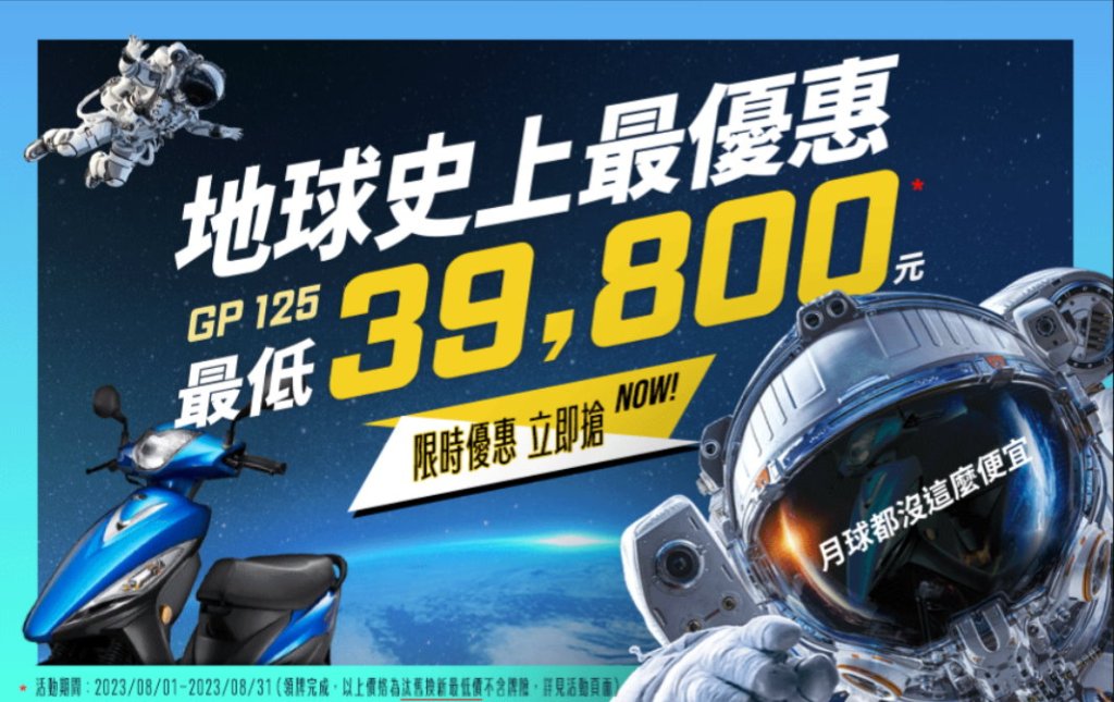 隨著當前物價和車價持續飆漲,KYMCO踏出了重要一步,以品牌宗旨「最得我心」與民心同聲,希望透過旗下最暢銷車款GP125的領頭作用,帶動台灣二輪產業銷售動能與成長。這不僅是一項針對汰舊換新購車的專案,更是一個為廣大民眾減輕生活壓力,實現更美好用車生活的契機。KYMCO抓準民眾面對通膨壓力的購車需求,並針對這些需求提供了史上前所未有的優惠方案,現在現金購車最低只需支付新台幣39,800元,就可以擁有一台全新的GP125!