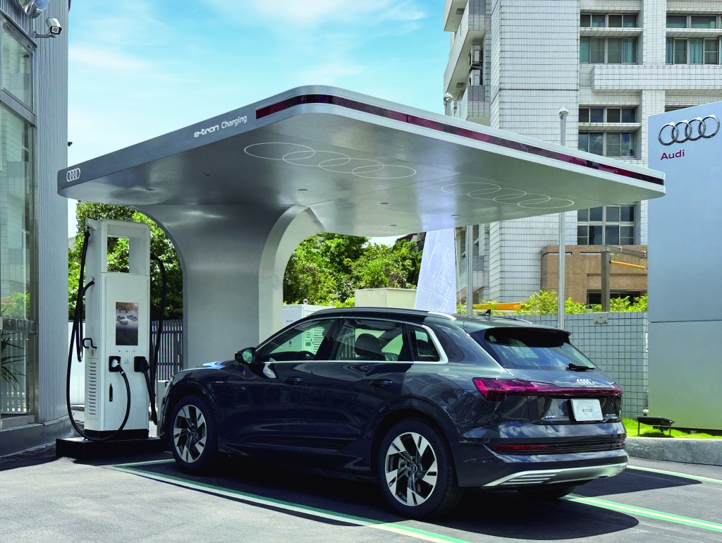 在通路服務部分亦帶來進程新訊,台灣奧迪與經銷商夥伴合力優化充電體驗,新升級Audi 極速充電站率先於Audi 南港展示中心正式啟用,設有Audi Charging Shelter永續充電站,結合品牌尾燈造型與簡約設計而成,同時頂部搭載高效太陽能轉換系統,可儲存電能供應頂棚夜間燈光,達到裝置能源自給自足的永續狀態,並兼顧雨遮功用。此新式設計未來將陸續更新至全台Audi 極速充電站點,給予純電車主更佳的充電環境。