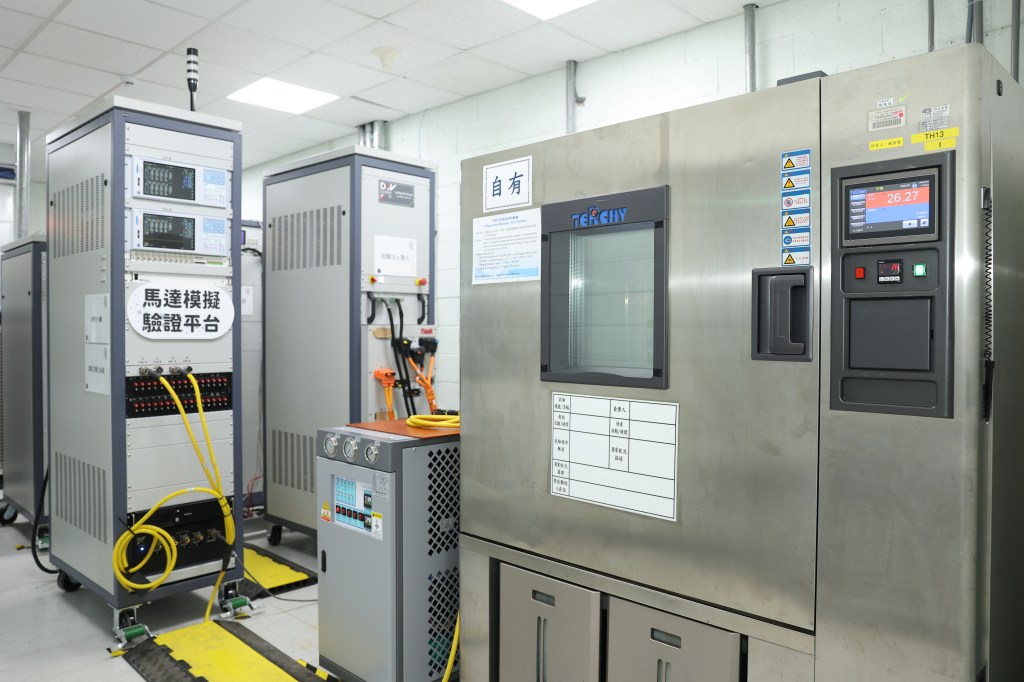 再者,關於電動車的馬達相關測試,車輛中心也具備多合一動力驅控系統驗證能量,高功率的電源模擬平台,可產生虛擬馬達供給電動車的驅動系統與零組件開發使用,進行馬達操作性能模擬、以及曲線耐久模擬等彈性應用平台,容納達市售大型電動巴士規格,也能同步完成結構強度與耐候驗證,縮短開發時程與經費。 有鑑於國際市場已有大型車電產品的驗證需求,如智慧座艙55吋大型面板、電動車輛驅動馬達等,在車輛中心完整的實驗室群中,皆可取得全方位的測試驗證,亦可銜接整車的驗證,一站式滿足產業需求,為產業裝上推向國際市場的進攻利器。