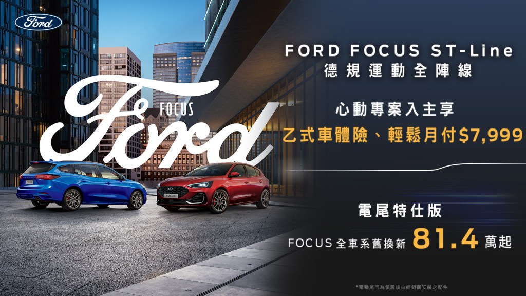 與德同規人氣指標車款Ford Focus推出以來,以多元車型設定:旅行車、五門掀背至跨界休旅,均獲得市場的一致好評。其中德規運動旅行車Focus Wagon結合優秀產品力與旅行車車格優勢,在適中的車身尺寸下,實現媲美SUV的高度實用性。其中以承襲ST運動基因廣獲消費者喜愛的New Ford Focus Hatchback採用1.5升三缸EcoBoost®182渦輪增壓汽油引擎,擁有同級最佳182ps最大馬力及SelectShiftTM八速手自排變速箱,不僅擁有最高17.1km/L高效油耗表現,在稅賦上也更加經濟親民;New Ford Focus Active則在延續Focus車系操控本質的同時,帶來更優異的乘坐舒適性,其離地高度163mm(前懸提高40mm/後懸提高44mm),搭配後獨立式懸吊系統和同級唯一的多地形處理能力,並提供標準、節能、運動、防滑或非鋪裝路面等多種動態行車模式,造就New Ford Focus卓越的操駕樂趣及多地形處理能力。此外,十月延續好評優惠,入主New Ford Focus針對Hatchback/Active車型「電尾特仕版」,享舊換新81.4萬元起,一鍵滿足生活便利與多元運用,以電動輔助輕鬆開啟後行李廂尾門,吸附式啟閉設計更添質感;入主全車系更可享首年乙式車體險及低月付7,999元。