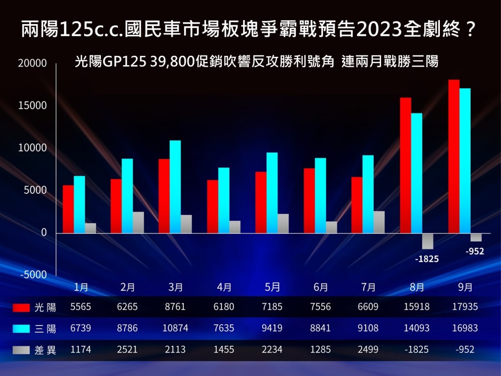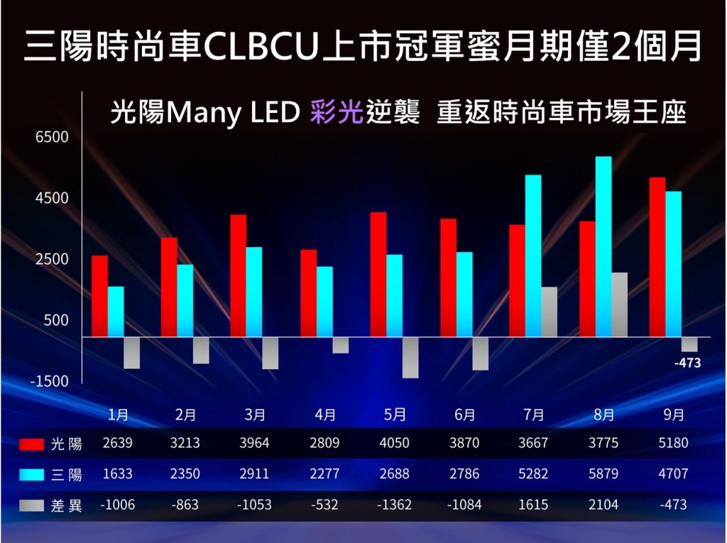 話說市場和網路不少人認為KYMCO打出GP125四萬有找是為了衝掛牌數,效果只會呈現在非常短期且無法挽救占有率,實際上僅不到兩個月的「優惠賞味期」可是接到65,548張訂單,截至十月初還有超過4萬張訂單嗷嗷待哺,縱使產線全開還是難以消化,正因為GP125效應使得九月份與SYM之間的佔有率差距來到32.1%對36.9%,也就是雙方拉近到4,595輛的差異,相較於今年前幾個月幅度明顯縮小,且從走勢來看似乎即將進入「死亡交叉點」。但或許有人還是認為這僅是短暫的甜蜜,但若從細項來分析恐怕就不是那麼一回事,而且還有機會來個逆轉勝。