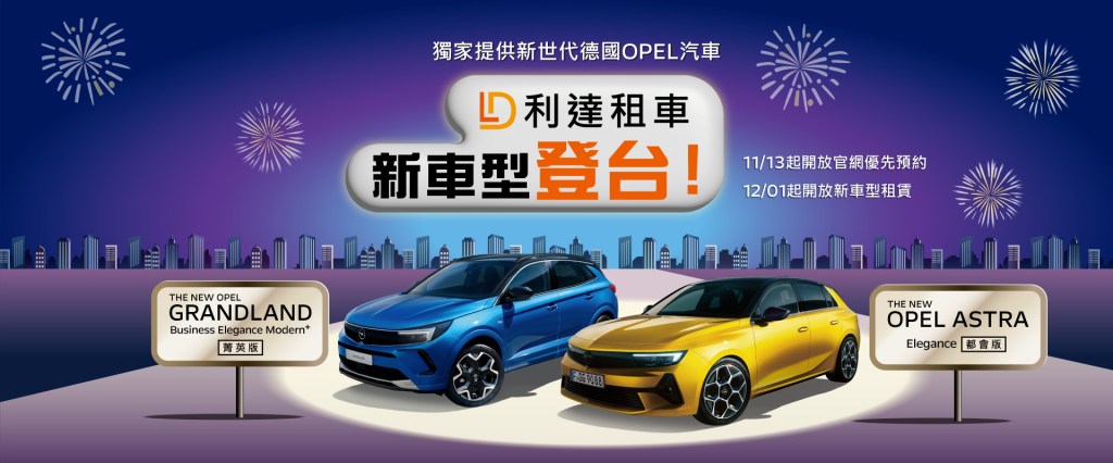 OPEL台灣總代理 歐吉汽車也攜手利達租車,將於12月1日起新增租賃車型GRANDLAND BUSINESS ELEGANCE MODERN+ 菁英版以及敲碗已久的ASTRA ELEGANCE都會版,並於11月13日提前在利達租車官網開放預約。