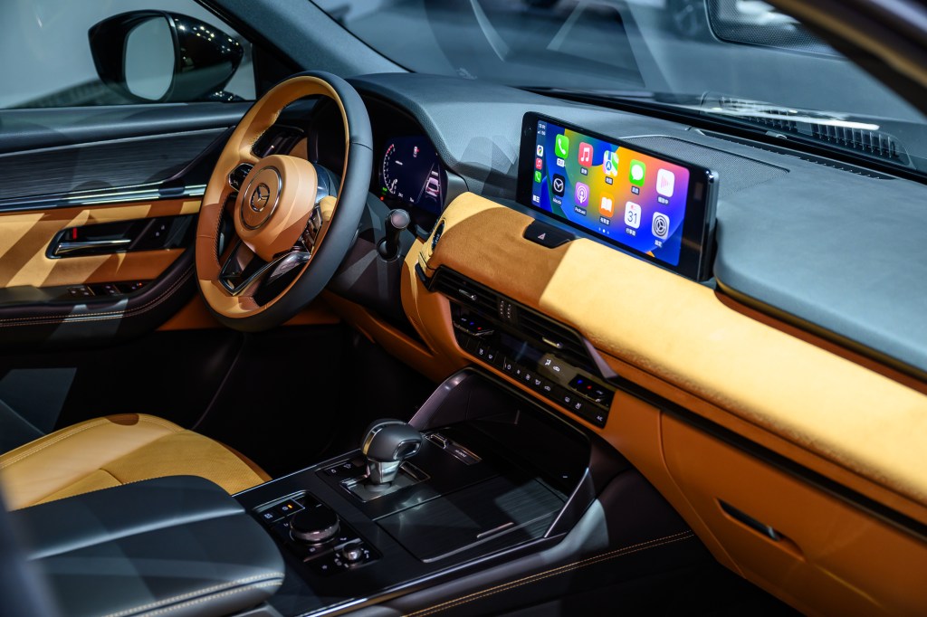 車室內裝採用全新日式「諧調」設計理念,將各式不同材質與紋理的元素,以渾然天成的方式自然地融合在車艙之中,讓一直是同級標竿的車室內裝質感,提升到了另一個全新的層次。除了標配雙區獨立恆溫空調與後座出風口,能為車內乘員帶來舒適的乘車環境,諸多嶄新科技配備包含 12.3 吋全數位多功能儀錶與 12.3 吋中央資訊顯示幕的雙大型顯示幕配置,不僅能完整呈現行車時所需資訊,也讓車載娛樂裝置 Android AutoTM 與無線 Apple CarPlayTM 的操作更為清晰。25S AWD Exclusive 以上車型更搭載具 12 支揚聲器的 BOSE® 環繞音響系統與可投影智慧型手機導航方向指引的大型前擋投影式全彩抬頭顯示器,科技與獨有的精緻質感交織出 ALL-NEW MAZDA CX-60 由外而內的雅緻品味。33T AWD 高階車型配有觸感溫潤細緻的 Nappa 皮革座椅搭配雙前座導流式通風功能,而雙前座十向電動調整與四向可調電動方向盤更可為駕駛及乘客提供最細膩貼心的乘坐體驗。消費者若選購 Premium Modern 套件,則內裝座椅將使用細膩柔軟的星砂白 Nappa 真皮,搭配經典的 Kakenui 日式懸浮縫合工藝輔以白楓木飾板的溫潤雅緻與環車鍍鉻的妝點,藉由不同材質相互交錯讓車室空間在光線的照射下,呈現多樣而飽滿的深度樣貌;若升級 Premium Sport 套件,於內飾上以暖沙棕顏色為基底,搭配大量麂皮質感材質、菱格紋 Nappa 真皮座椅、及罕見的雙色方向盤設計共同形塑出跨級距的高貴典雅車艙氛圍。