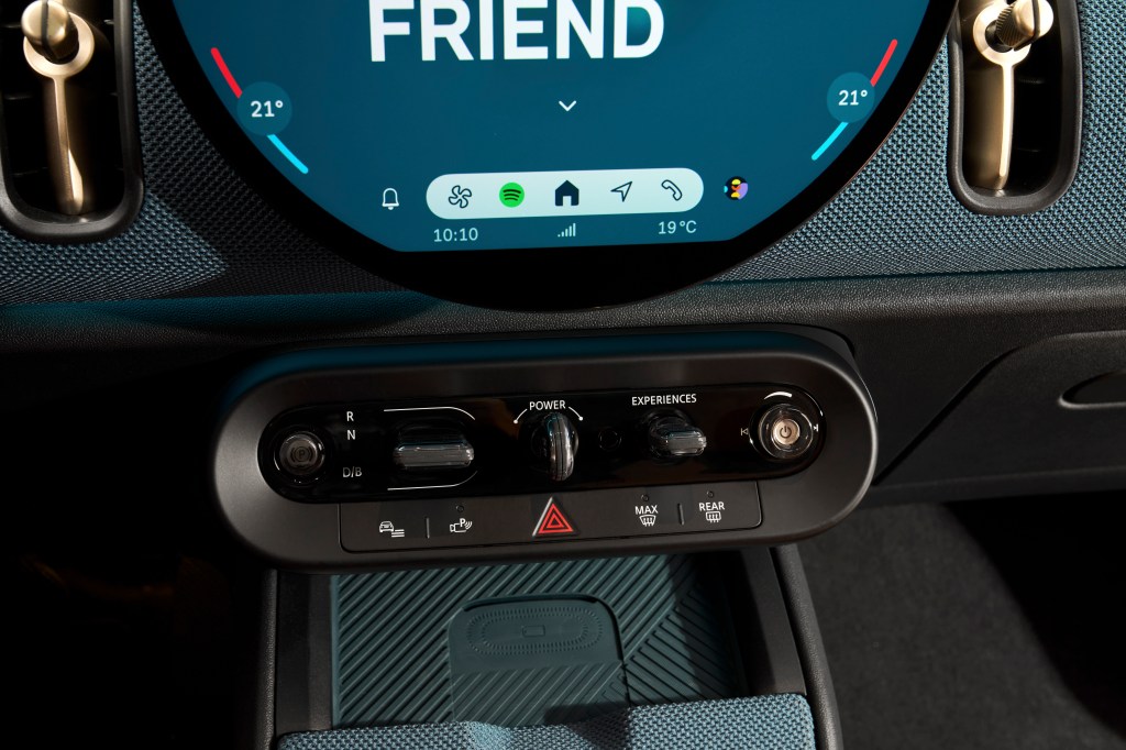 全新設計語彙「Charismatic Simplicity 迷你至簡」理念在內裝設計中更加明確:坐上駕駛座,方向盤前方的儀表已不復見,整體配置更加俐落簡潔。下一秒,目光視線將隨即被MINI的靈魂 – 直徑達24公分的OLED中控螢幕吸引,螢幕下方的功能按鈕控制區傳承了經典Mini的設計精髓,配置了共五個常用按鈕,包含: 電子手剎車、排檔桿、MINI Experience Modes體驗模式,最中間的功能鍵是如同傳統鑰匙般的扭轉啟動按鍵,在發動引擎時感受經典熱血。圓形OLED螢幕下方的水平線將整體內裝分為上下兩部分:水平線以上的細節設計皆以垂直線條詮釋,如冷氣出風口與車門開關把手,特意留白的空間更在在呼應迷你至簡理念,讓一切回歸到MINI最純粹的樂趣本質。