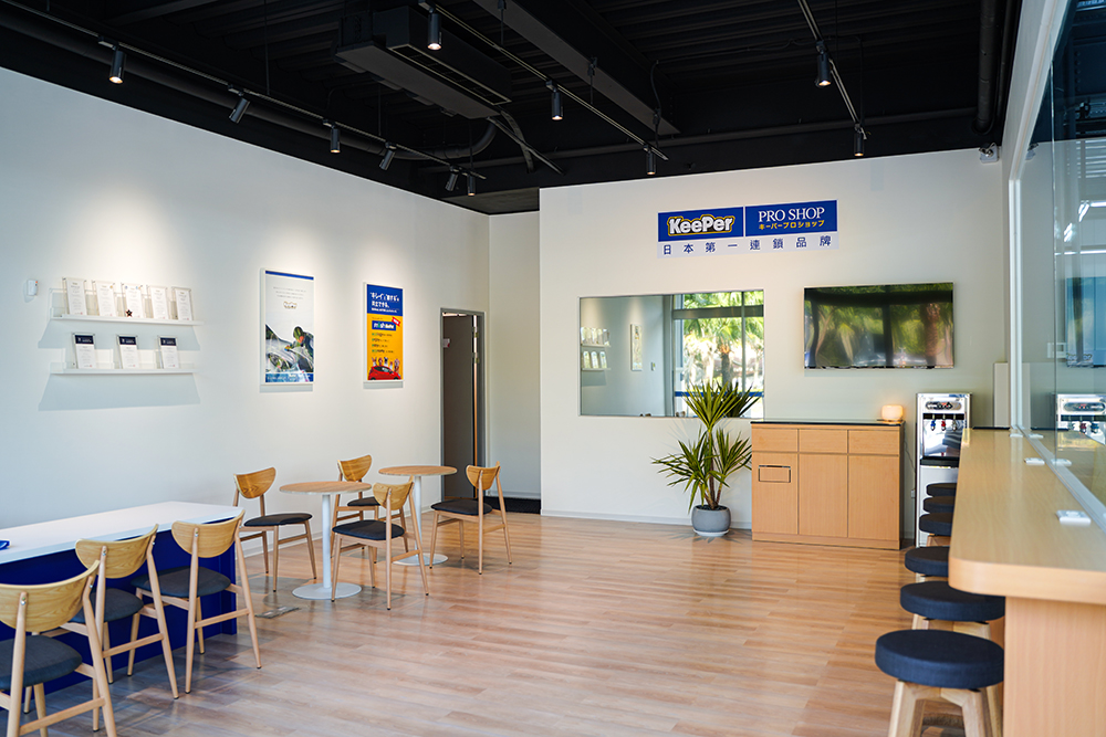 KeePer PRO SHOP竹北旗艦店,落腳於新竹收入最高的蛋黃區之一鹿場里。旗艦店內部明亮寬敞的施作空間及動線,是KeePer高效率的關鍵之一,日式簡約的客休室,透過大片玻璃設計,讓車主可以在休息的同時觀賞整個施作過程,舒適的氛圍與環境更是深受女性客群喜愛。KeePer PRO SHOP 為永續發展,所有藥劑都是在「化學研究室」獨自開發的,開發部擁有洗車、鍍膜的實踐技術,所有化學產品都經由開發部進行嚴密的測試;且所有與 KeePer 鍍膜的相關的化學品,均由不會污染環境、不會破壞環境,能「自然分解」的化學成份製造。