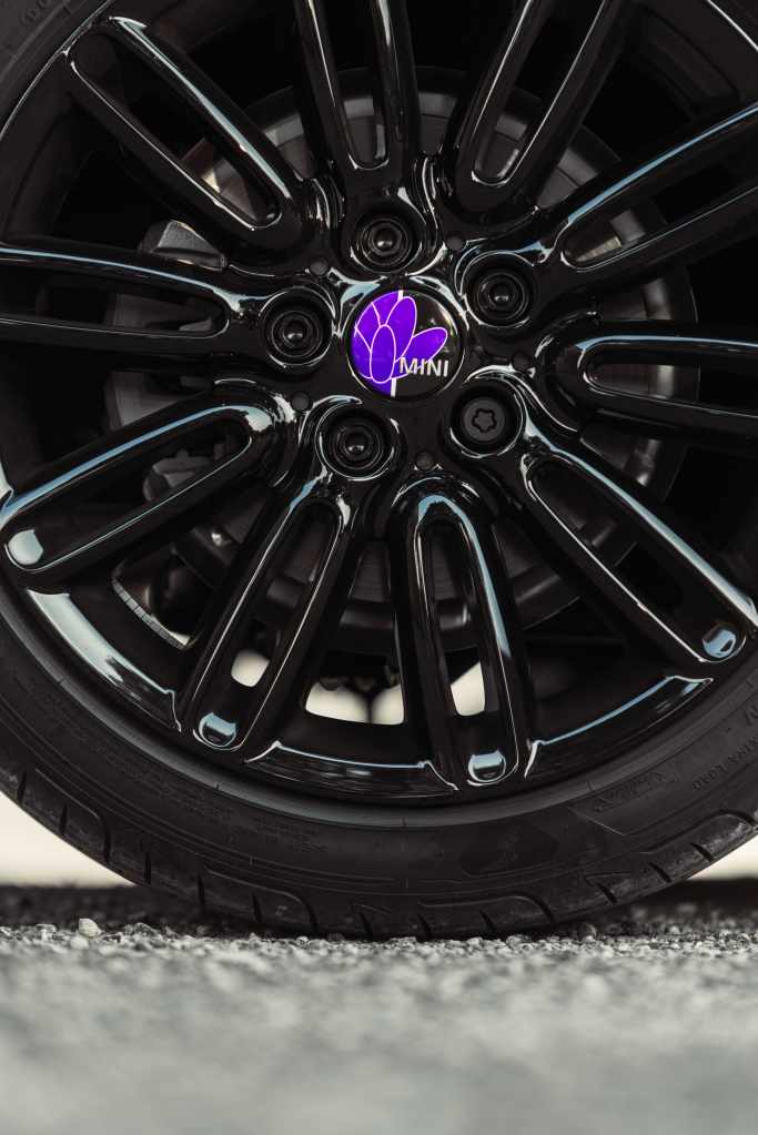 MINI Mayfield Edition配置的兩種車型分別選用了不同的主色調,MINI Cooper S 3-Door以Enigmatic Black呈現低調高貴的神秘感,而MINI Cooper 5-Door則提供了Nanuq White / Rooftop Grey / Midnight Black三款車色選擇(限量),搭配紫色調設計,每種搭配皆可呈現高雅氛圍。MINI Mayfield Edition的車側與車頭處,均可見MINI品牌源流的英國國旗飾條,細看17吋Pedal Spoke Black輪圈的中心,則嵌上了薰衣草花瓣的懸浮定軸輪圈蓋,讓行進過程彷彿如紫蝶優雅的舞姿。最後在車頭正視角下,MINI Mayfield Edition限定的車頭徽飾,以及專屬鑰匙蓋上的標緻Mayfield字樣,皆展現出MINI Mayfield Edition別出心裁的設計語彙。