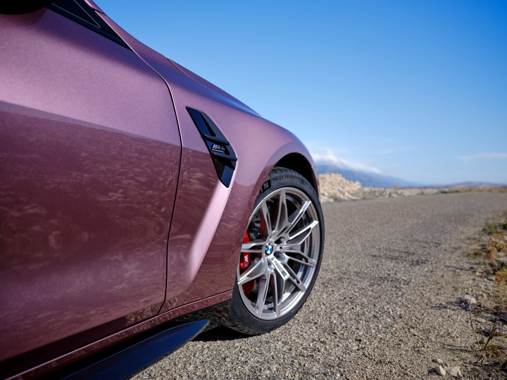 在優美的車身肌理線條以及充滿動感賽車基因車身造型中,全新BMW M4 Competition Coupé M xDrive與BMW M4 Competition Convertible M xDrive以全新四眼造型日型燈帥氣登場,全面升級的光型變化智慧LED頭燈更為車主提供最安全便利的夜間駕駛環境。車尾處黑色高光澤廠徽底座與以銀色包圍的M4 Competition車型銘牌,點出全新BMW M4 Competition與眾不同的精緻細節;而最吸引車迷的莫過於承襲全球限量1,000台的夢幻車款BMW M4 CSL獨有的BMW雷射尾燈,引人注目的線條紋理交織於玻璃外罩中,當LED雷射光線穿透燈罩,即創造出絕美且不容錯認的璀璨光影。標準配備的前19後20吋黑色M雙輻式826M型鍛造輪圈,為爆發力十足的全新BMW M4 Competition車款提供輕量化與極佳的剛性及強韌度,喜愛嶄新造型的車主則可以選擇全新款式的銀色M雙輻式825M型鍛造輪圈以及M賽車風格飾條,為愛車增加獨樹一格的迷人丰采。