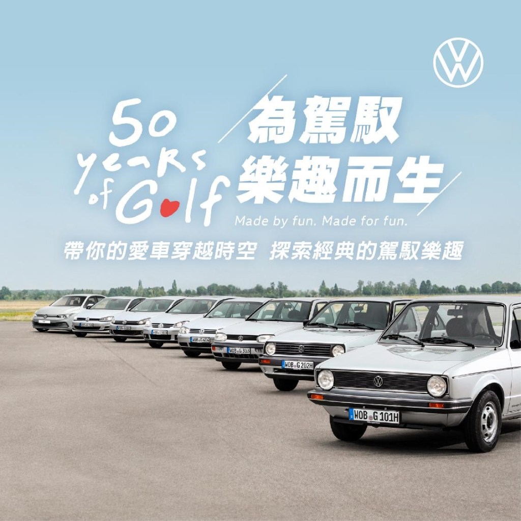 同時,為歡慶 Volkswagen The Golf 誕生五十週年盛事,台灣福斯汽車精心規劃了「The Golf 50 週年-跨時空海報」、「The Golf 50 週年電影院-精彩故事由你主演」等專屬活動,並且預告將於5月11日(六)下午2:00-5:00假台北南港展覽館舉辦「2024 Volkswagen 品牌嘉年華-歡慶 The Golf 50 週年」,與熱愛 Golf 的台灣車主及消費者共同見證 Golf 這趟走過半世紀的美好旅程,敬請 The Golf 車主熱烈參與報名。