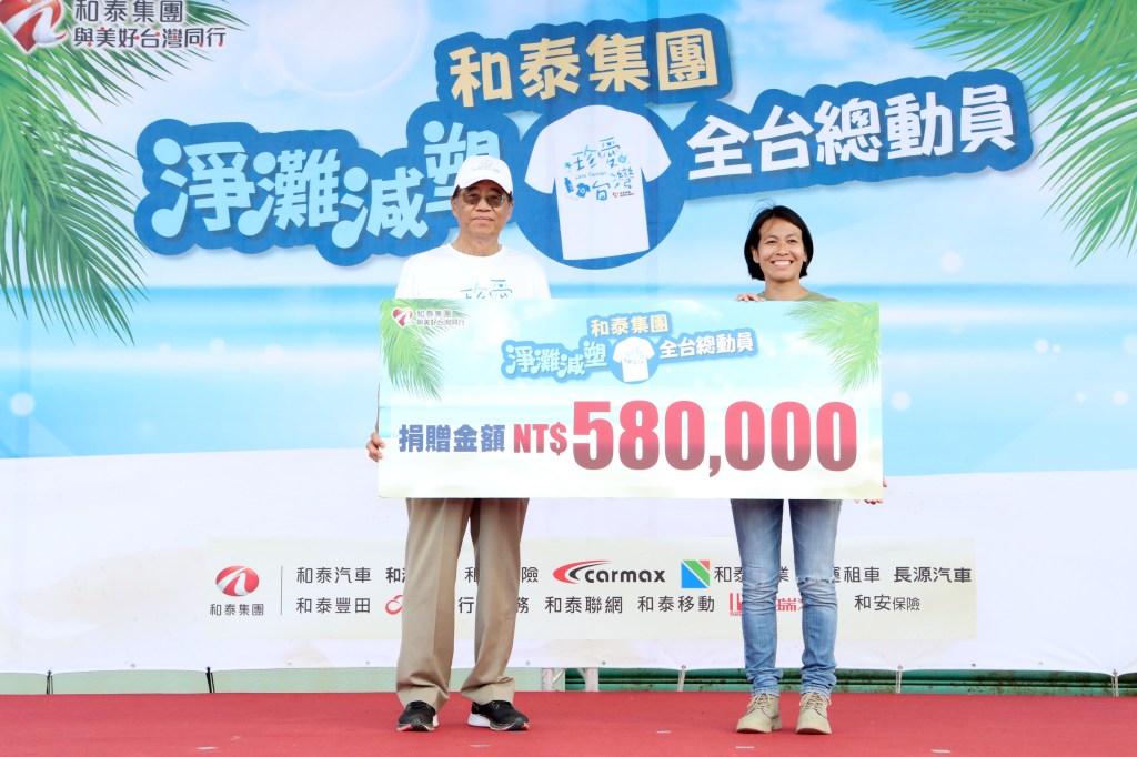此外,為延續活動理念向下扎根,和泰集團持續以每參加1人,捐50元予台灣咾咕嶼協會,挹注全台國小孩童的環保減塑教育公益基金,提升下一代的環保意識。今年花蓮北濱公園場次因鄰近地震災區,為避免干擾政府救災復原工程,延期舉辦,然本公司仍將該場次報名人數納入捐款範圍,全台總計共11,536人,計算金額為576,800元,加碼至580,000元捐出。