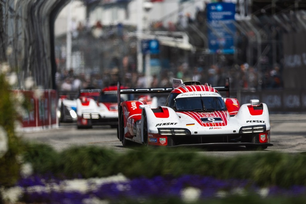 在攝氏22度的明媚陽光下,IMSA錦標賽再次為車迷們帶來了一場刺激的比賽。開賽僅僅11分鐘後,安全車便因事故第一次出動。兩部保時捷963賽車也在不久後首次且唯一一次進站。Porsche Penske Motorsport車隊此番策略性的安排顯然卓有成效,兩部697PS(513kW)的混合動力原型賽順利晉升至第三及第四名。
