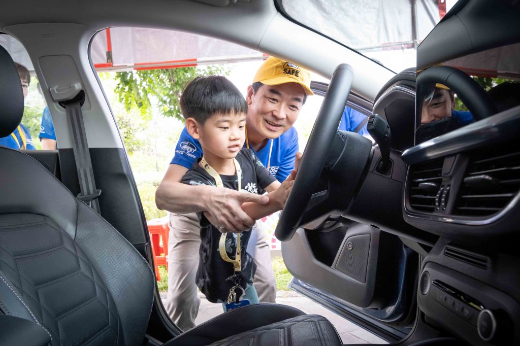 基於遊戲中潛移默化兒童交通安全觀念的主軸,今日於台北兒童新樂園舉辦的「攜手停看聽 寶貝安全行!小黃帽交通安全童樂會」,主辦單位規劃「視野死角冒險王」、「安全禮貌公車行」、「安全『停』等我最行」、「眼『看』四面來找碴」和「出發拯救斑斑去」等十二關卡,讓學童藉由闖關活動認識視野死角、掌握搭乘公車安全守則,並學習如何在穿越道路前停下來、觀察周圍的交通情況與聽聲辨識來車動向,進而降低發生事故的風險。其中,福特六和汽車提供New Ford Focus Active Wagon Vignale為「出發拯救斑斑去」的安全示範車輛,教導孩童如遭遇到受困汽車時,透過拍打車窗、尋找方向盤喇叭位置且大力按壓發聲來達到求助效果,顯而易懂的方式也讓家長和孩子們充份學習正確觀念。