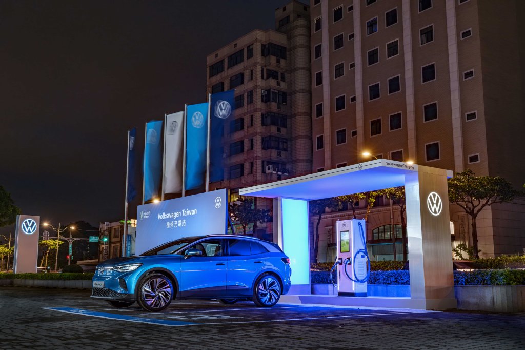 台灣福斯汽車即將帶來純電休旅ID.4和純電跑旅ID.5二車款的Pro 及 GTX 性能車型,並且積極推動全台完善充電網絡,首座極速充電站於Volkswagen中壢璿豐展示中心正式啟用,供應360 kW超充功率,並且配備CCS1和CCS2雙槍規格,有利台灣大部分電動車充電需求。Volkswagen Taiwan 極速充電站在設計初衷追求簡潔舒適體驗,站體設有先進太陽能光電屋頂、主體建築側板照明採藍白光切換,搭配純白充電機座形成時尚與未來兼具的視覺感受,太陽能發光屋頂不僅提供適當遮蔽,並且採更加低碳環保的自發供電形式。