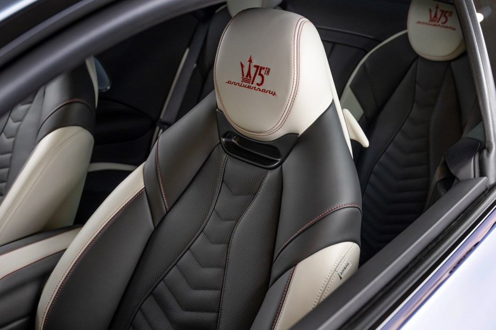 限量版外觀配備前 20 吋、後 21 吋的 Mugello 黑化輪圈,將引人注目的 75 週年標誌置於輪圈中央,而車室內的 4 座頭枕則以 75 週年標誌的專屬刺繡進行點綴,搭配雙色 Linear Graphic 紋路的座椅內裝,精湛工藝之下的細緻鋪陳,為義式奢華做出了最佳詮釋。