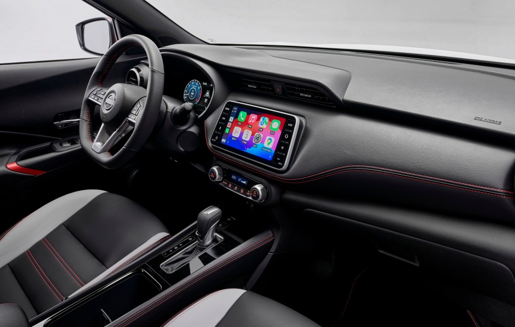註4:潮流內裝套件含紅綴皮革質感縫線-方向盤/儀錶板/中央扶手/黑灰雙色專屬皮革座椅與KICKS專屬頭枕/腳踏墊。