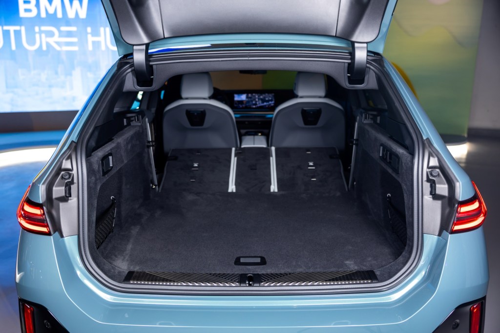 全新首創BMW i5 Touring純電豪華旅行車擁有更為放大的車身尺碼,軸距表現達到優異的2,995mm,創造出最高可擴充至1,700公升的後廂空間,結合電動尾門啟閉系統與尾門感應式啟閉功能,讓i5 Touring在美型之餘更保有便利的後廂空間取物機能,而從車身B柱向後延伸的悠長車頂線條,佐以從車頭一路上揚的車身肩線、車側多道刻劃出肌肉線條的鈑金折線、20吋胎圈、M煞車套件與車尾向兩側上揚的橫幅式3D立體LED尾燈,都創造出飽滿且兼具力量感的車尾線條,為全新i5 Touring塑造出令人難以錯認且備受眾人讚賞的動感輪廓。