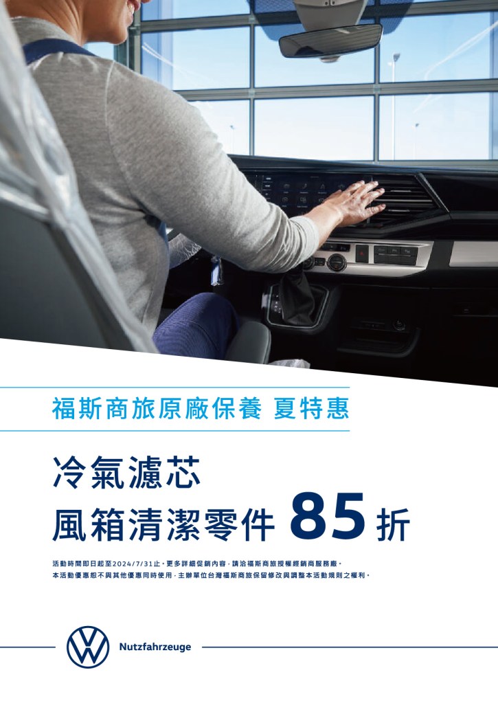 晴朗的盛夏即將到來,這是規劃精彩旅程的最佳時機,但高溫的氣候對愛車而言卻是一大挑戰。福斯商旅為了確保您的愛車在酷暑中依然是您最可靠的旅伴,在2024年6月1日至7月31日活動期間特別推出「酷涼境界」 夏季健檢,讓您在這個夏天與家人盡享舒心旅程。